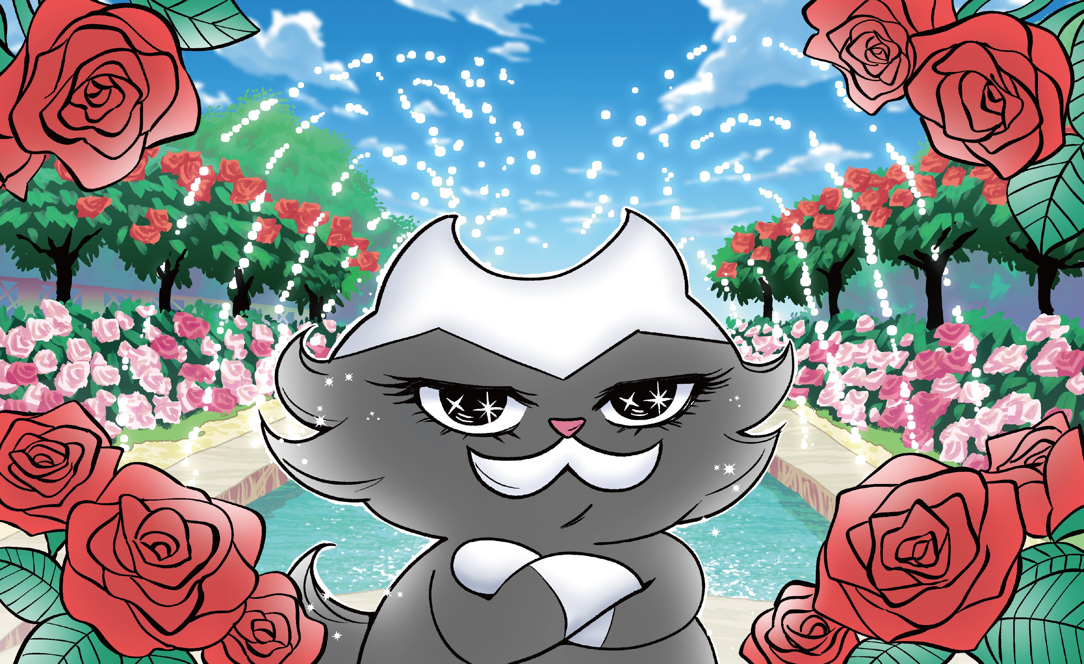 山手イタリア山庭園は横浜市中区の山手地区にある庭園で、1880年(明治13年)から1886年(明治19年)までイタリア領事館が置かれていたことから、イタリア山と呼ばれています。水路や花壇を幾何学式に配したイタリア式庭園です。花壇に咲くバラは姉妹都市のリヨンから贈られた「プレステージ・ドゥ・リヨン」が咲いています。青空のもと、きらきらと輝く噴水の弧はまるでKABRIの背中から生えた天使の羽に見えます。